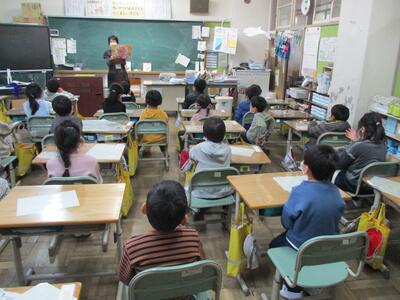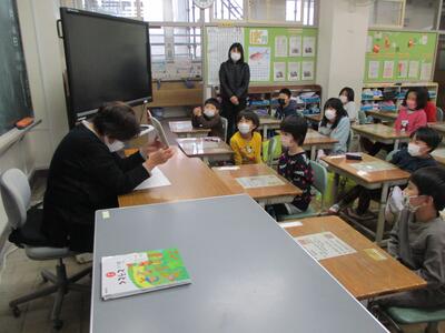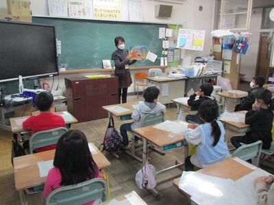 今日は1・2年生の読み聞かせがありました。子ども達は熱心に耳を傾け、お話の世界に引き込まれていました。(^^)