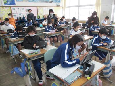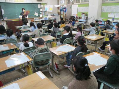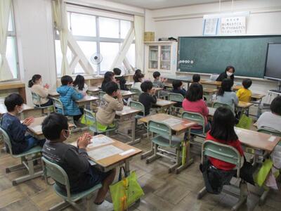 今年度初めての授業参観を実施しました。お忙しい中たくさんの保護者の皆様に来校していただきました。子ども達は緊張したり喜んだりしながら授業をがんばっていました。(^^)