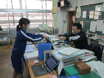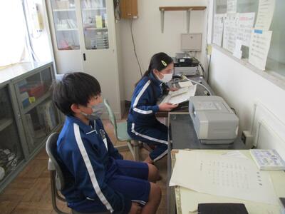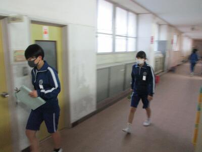 校舎内では、保健委員会と放送委員会の皆さんが朝の活動をしていました。責任を持って仕事を行っています。(^^)