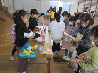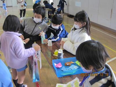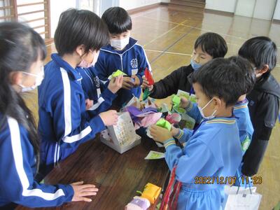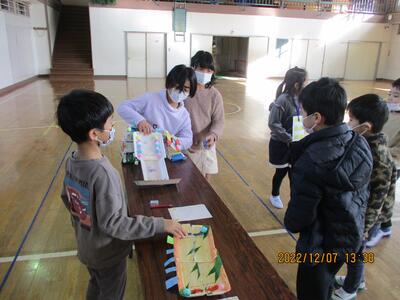 1年生も、2年生が作ってくれたおもちゃでとても楽しく遊んでくれました。とてもよい交流になりました。(^^)