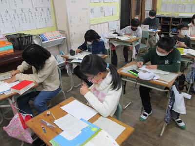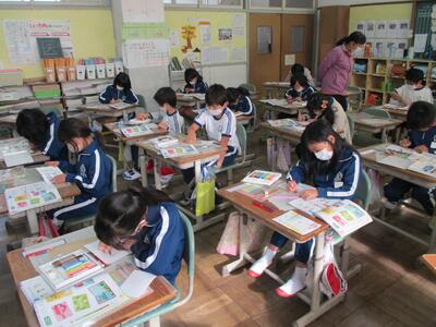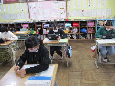 6年生は、構想メモをもとにして構成を考えながら作文を書いています。書いた作文は卒業文集にまとめます。がんばってほしいと思います。(^^)
