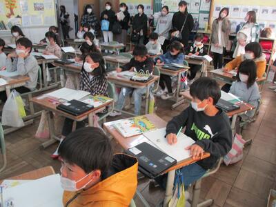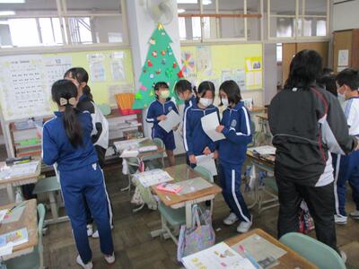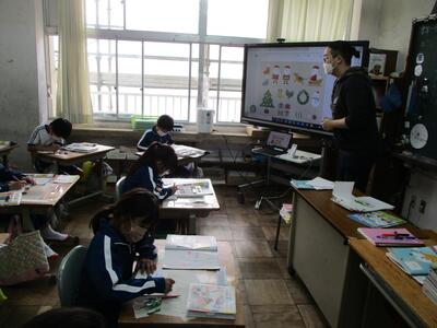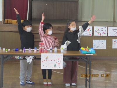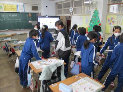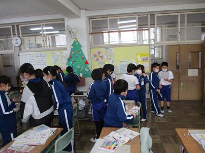 3年生は外国語活動でクリスマスについて学習し、いろいろな色を使って心を込めてクリスマスカードを作りました。(^^)