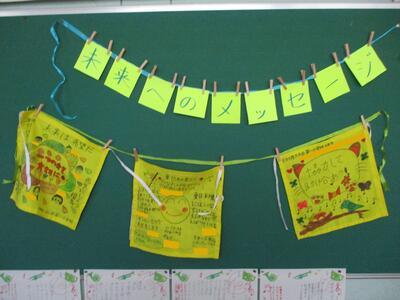 先日、震災語り部の方に東日本大震災についてお話をしていただき、慰霊祭の「未来へのメッセージ」を託されました。子ども達は心を込めてメッセージを書き入れました。(^^)