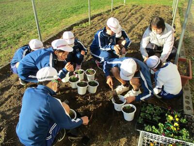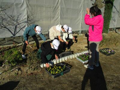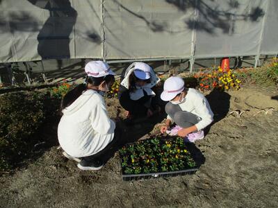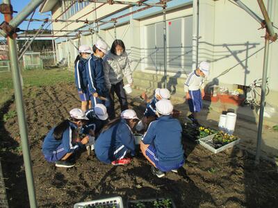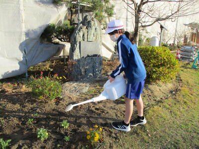 今日は昨日に引き続きとてもよい天気でした。緑化委員会の皆さんが、花を植えたり、世話をしたりしてくれています。これからますます寒くなってきますが、色鮮やかな花が咲いていると気持ちが明るくなります。ありがとうございます。(^^)