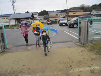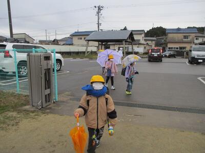 今日は小雨の降る中の登校でした。冷たい雨の中、見守り等ありがとうございました。m(_ _)m