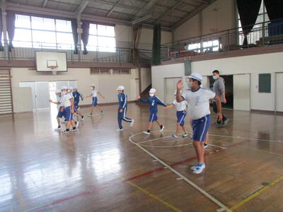 5年生は体育館で体力づくりをしていました。だんだんフォームを意識できるようになってきています。(^^)