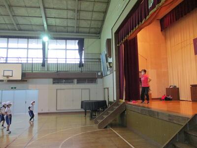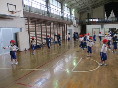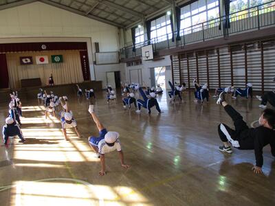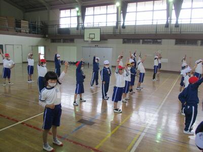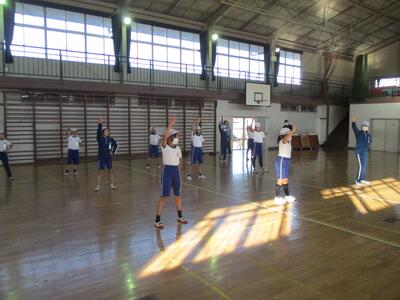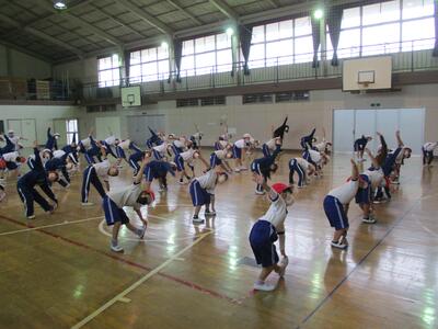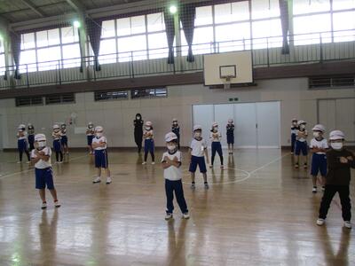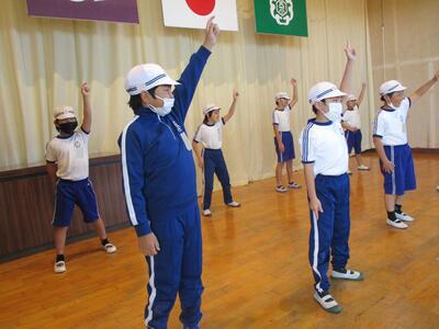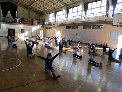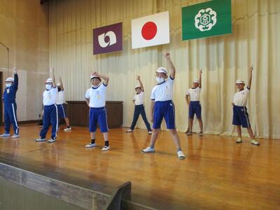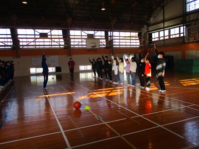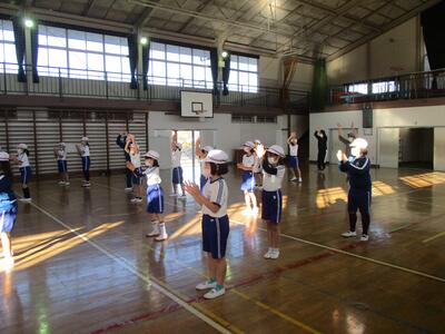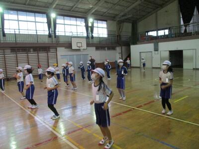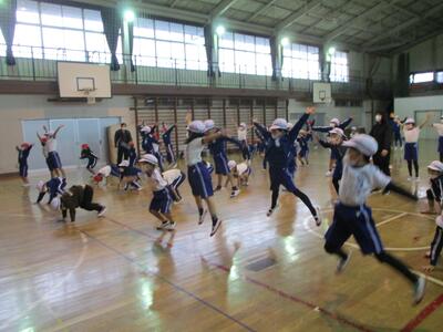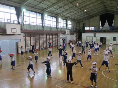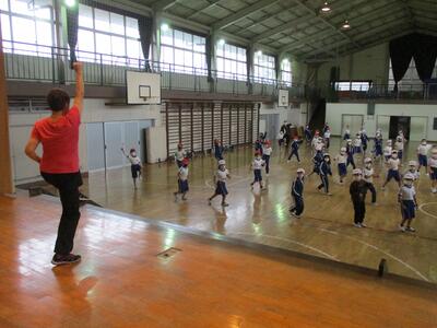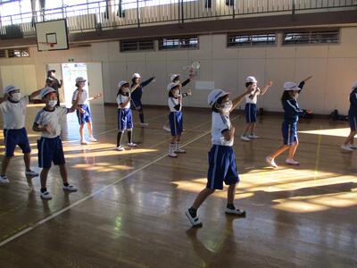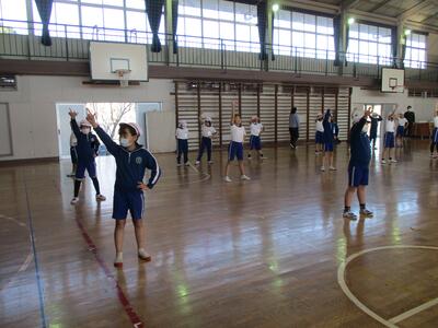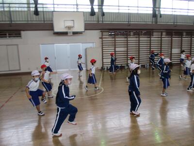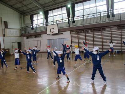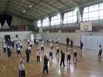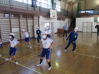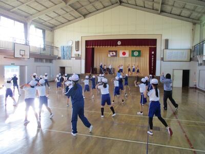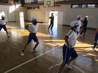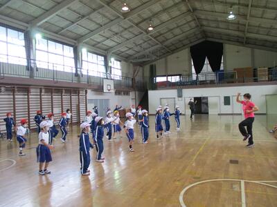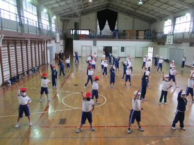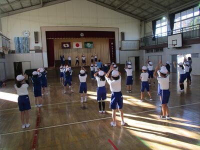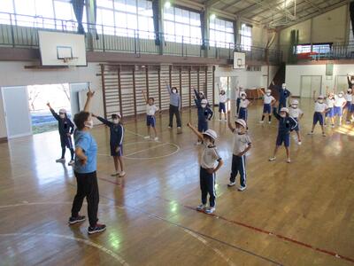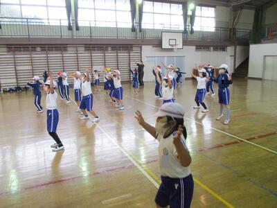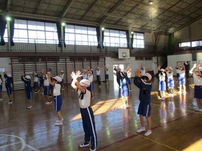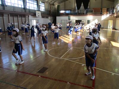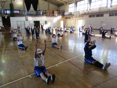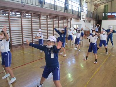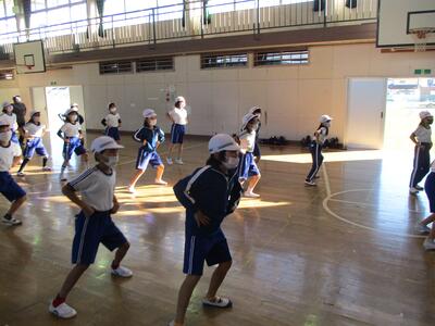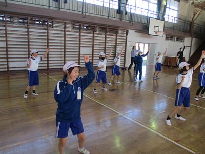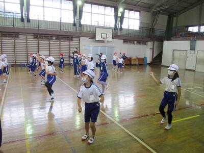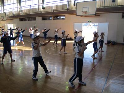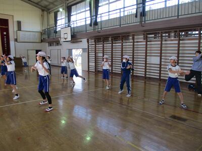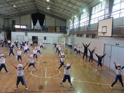 今日は3・4年生が「エアロビクス教室」を行い、講師の先生のご指導のもと、元気よく体を動かしました。