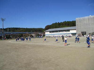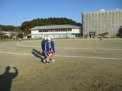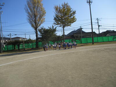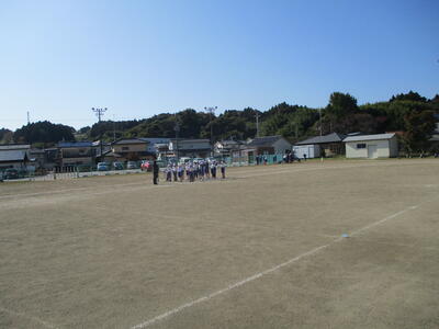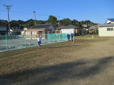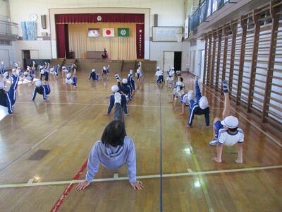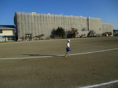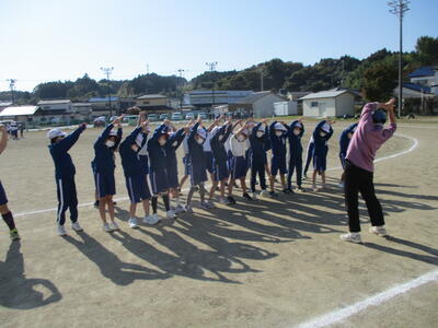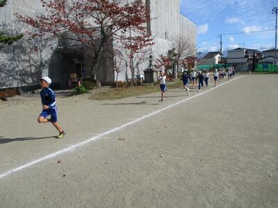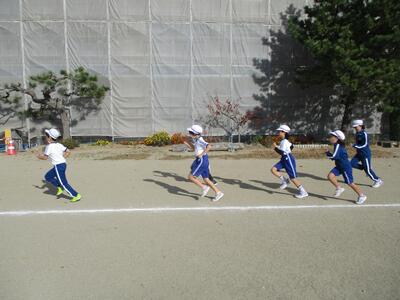 業間運動では体力づくりのため持久走を行っています。はじめに学年ごとに準備運動をして、自分のペースで走ります。どの学年も、みんながんばっていました。(^_^)v