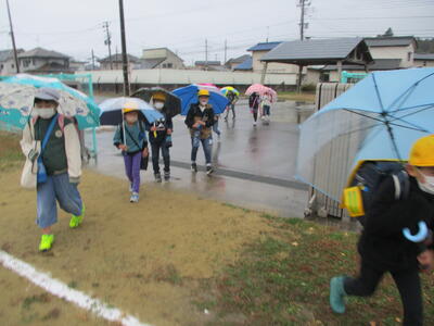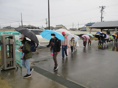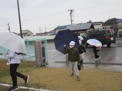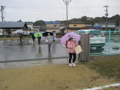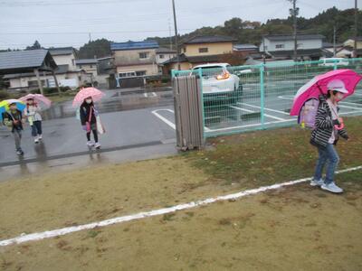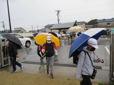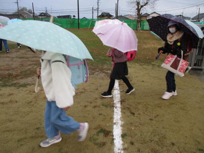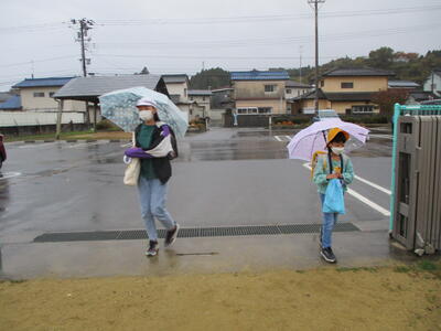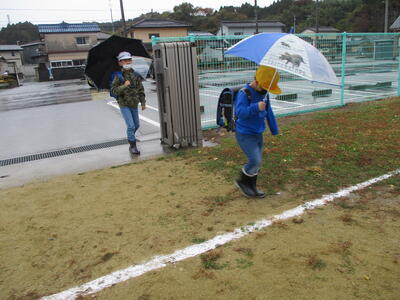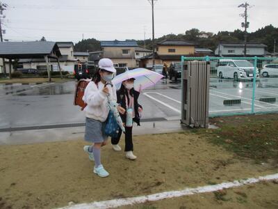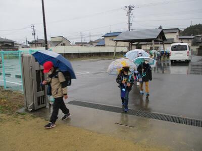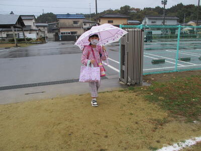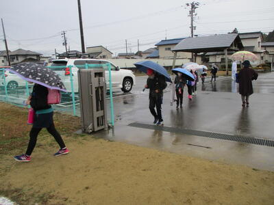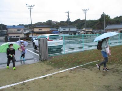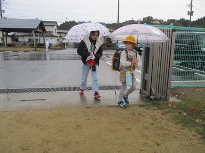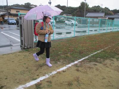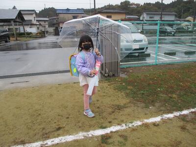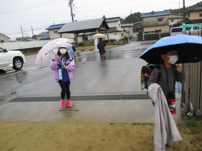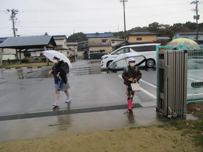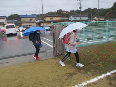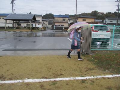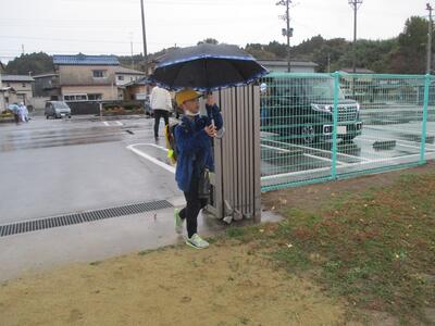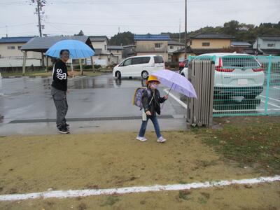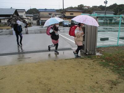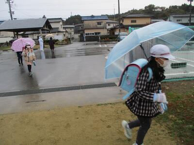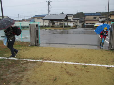 今日は久しぶりに登校時間に雨が降りました。保護者、地域の皆様、見守りや送迎、ありがとうございました。m(_ _)m