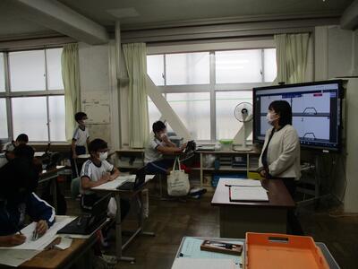 はじめに自分なりの考えでグラフを描き、タブレットで提出して、グループや全体でどんなグラフになるかを話し合いました。