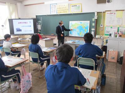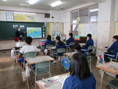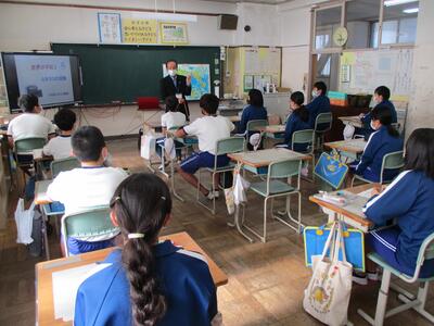 6年生は「ユネスコ出前講座」でユネスコについて学習しました。講師の先生からユネスコの活動について教えていただく中で、平和の大切さや自分たちにできることなどについて考えることができました。