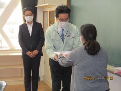 1階の東側トイレの洋式化の工事が終了し、寄附受納式(感謝状贈呈式)を行いました。