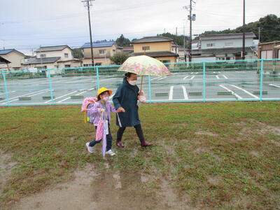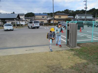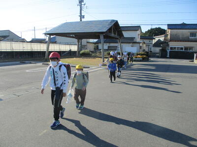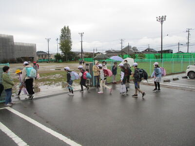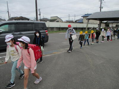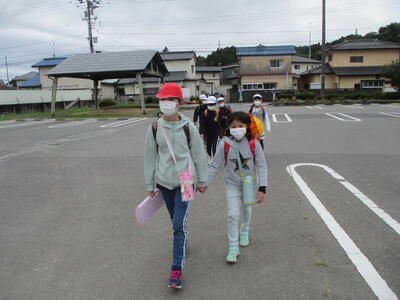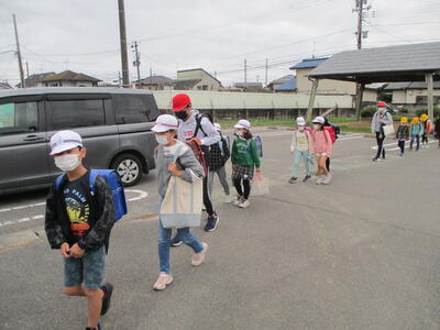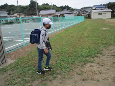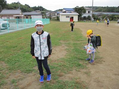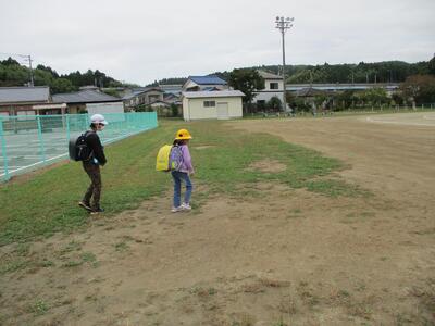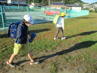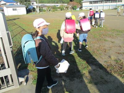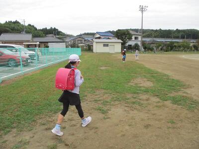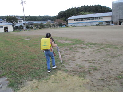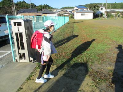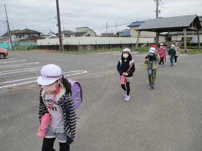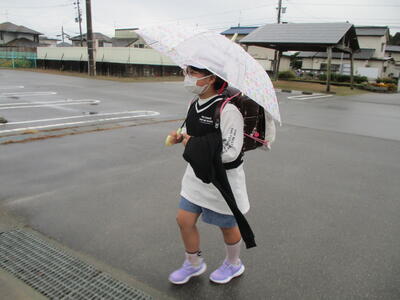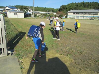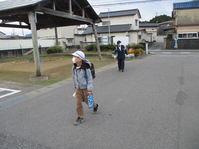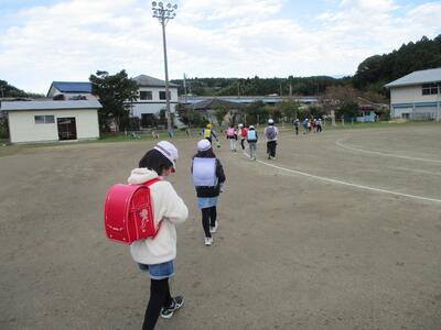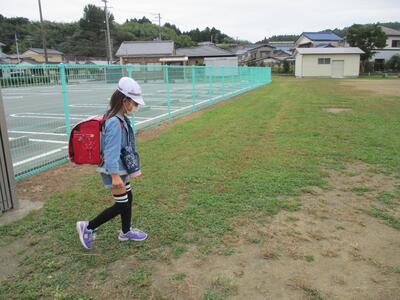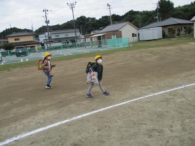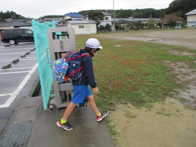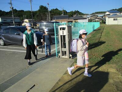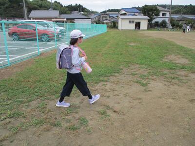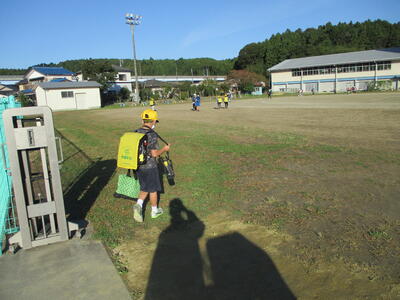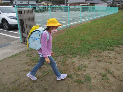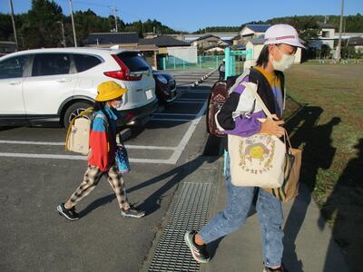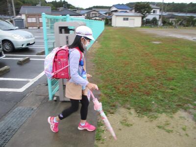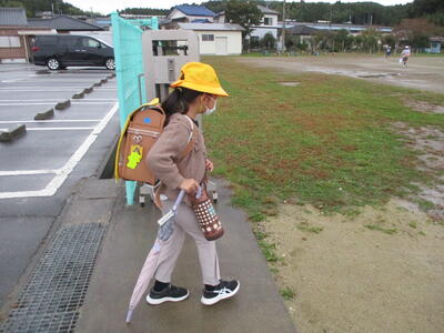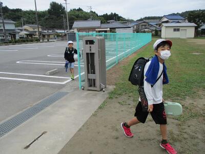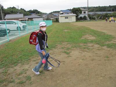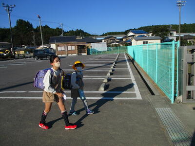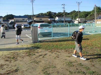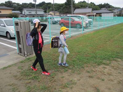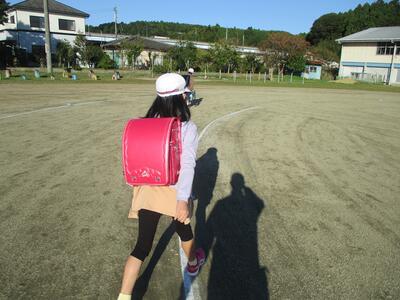 先日の運動会の話などしながら歩きました。今日からまた午後まで授業です。がんばってほしいと思います。(^^)