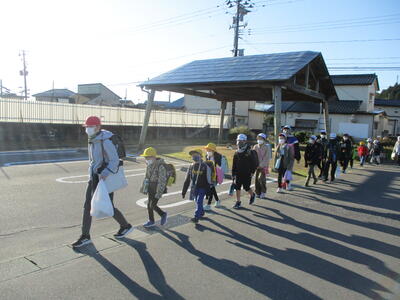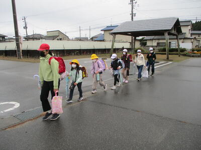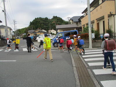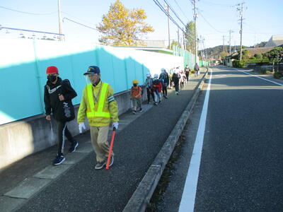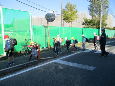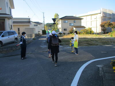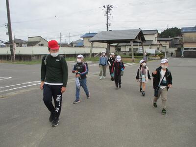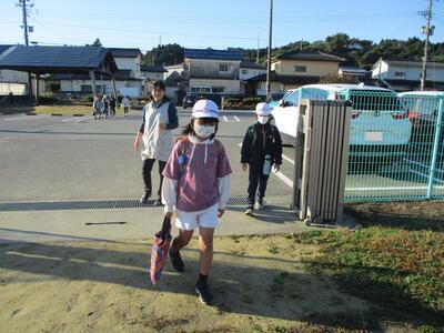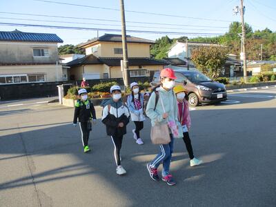 久しぶりの快晴。秋晴れの清々しい朝でした。今日は畑田北1班、畑田中班、荒蒔班、川田班の登校班と出会いました。