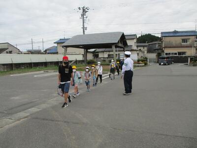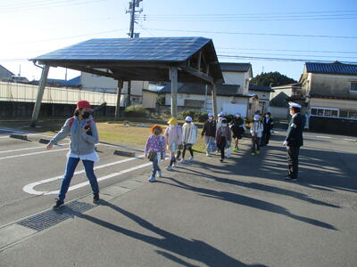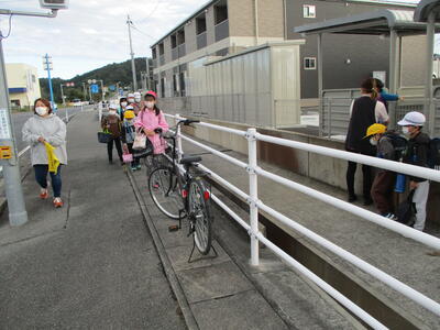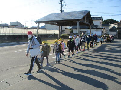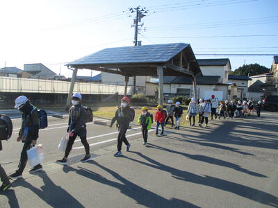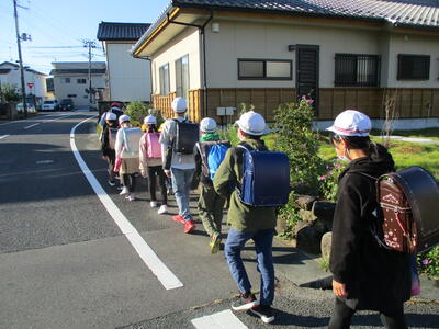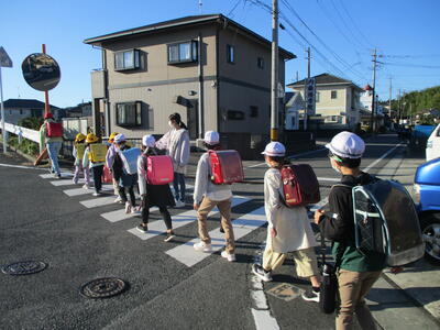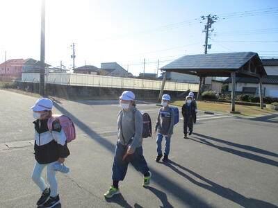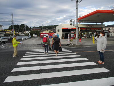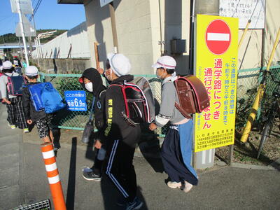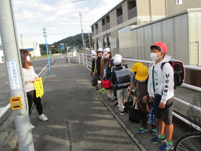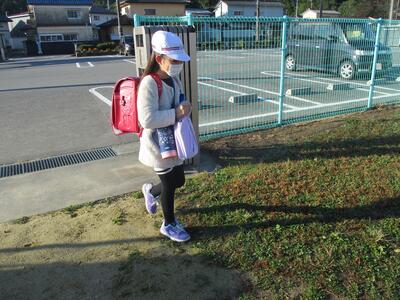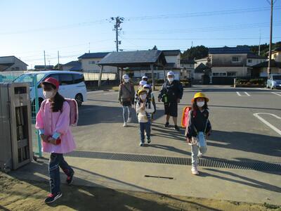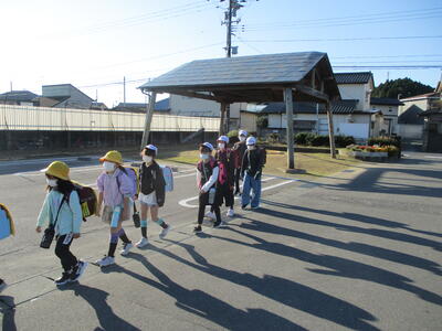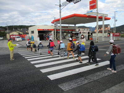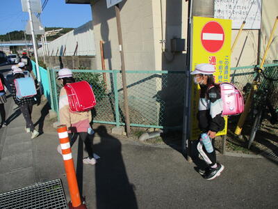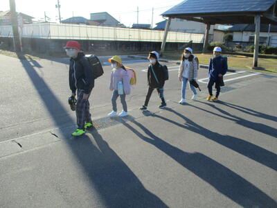 今日は立班・川田班の登校の様子です。国道を渡るのですが、みんな安全に気をつけて登校しています。(^^)