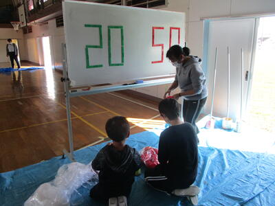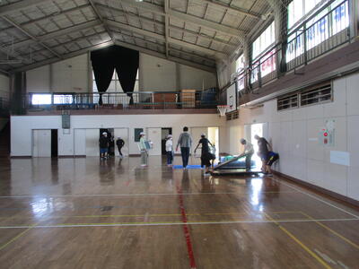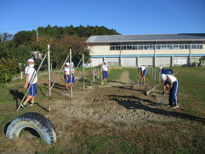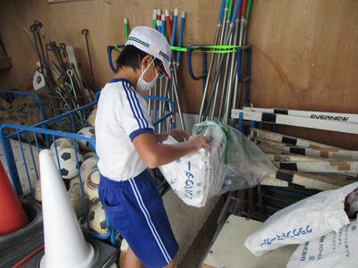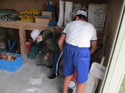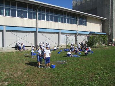 5校時目に5・6年生が運動会の準備を行いました。