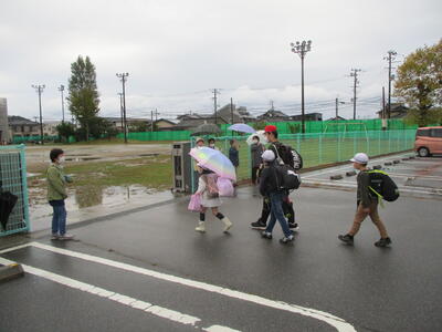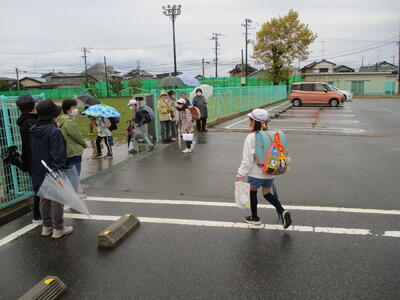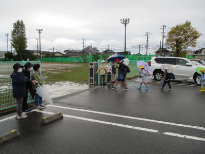 冷たい雨が降ったり止んだりする中、今日も子ども達は安全に登校することができました。(^^)