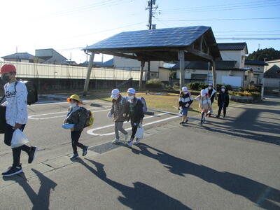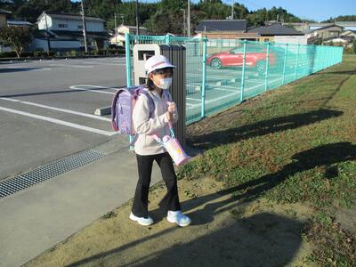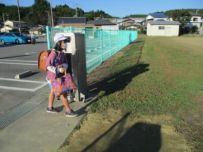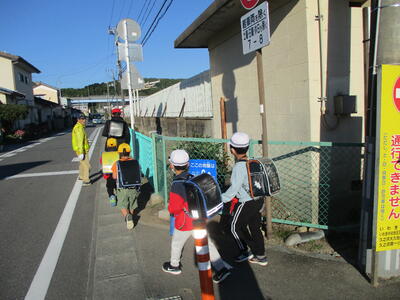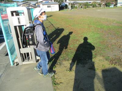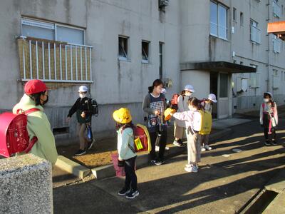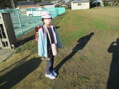 まぶしい朝日に照らされながら、今日も子ども達は安全に登校することができました。(^^)