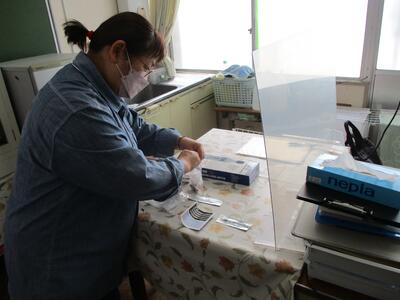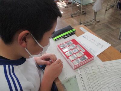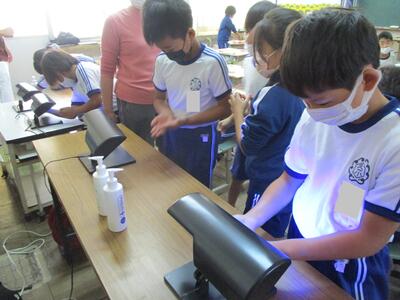 1校時目の休み時間から2校時目にかけて、照度検査とダニ検査をしていただきました。学校薬剤師の先生と各教室の照度を計測したところ、問題ない明るさでした。6年生は、家庭科で学習した内容の確認になりました。