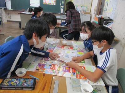 「お買い物すごろく」や「ももの街ゲーム」などで、お金の使い方やまちづくり、SDGsについて学習しました。
