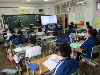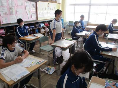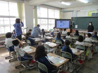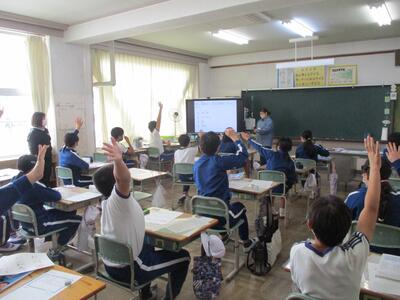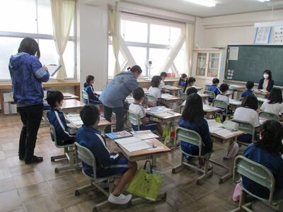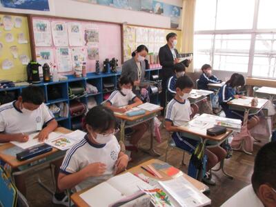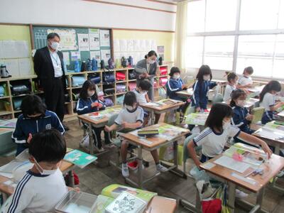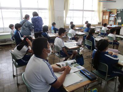 今日の2・3校時は、福島県といわき市の教育委員会の先生が来校されて、学校の様子をご覧になられました。