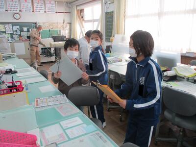 朝の職員室には委員会活動をする子ども達が訪れます。自分の役割を自覚して、しっかりと活動をしています。(^_^)v