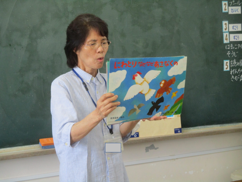 今日は、「子どもの読書環境を豊かにする会」の、栁田先生、安田先生、榊原先生がお見えになって、1・2年生のお友達に、読み聞かせをしていただきました。