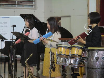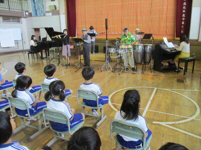 今年度は、ミューゼ ラテンアンサンブルの皆様においでいただき、ラテン演奏やアンサンブル(リコーダー)、ディズニー音楽など、たくさんの曲を演奏していただきました。