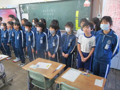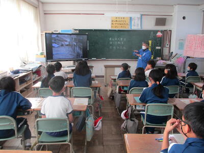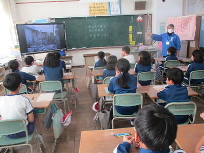 今日の3校時に、福島県危機管理部危機管理課の紺野様においでいただき、「そなえるふくしま防災出前講座」を、4年生にしていただきました。