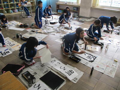 3・4年生は書き初めの練習中。なかなかの力作ぞろいです。