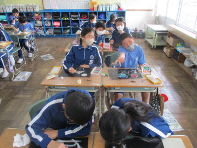 5年生は図画工作科の時間。自分の作品制作に没頭中!?