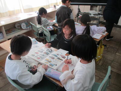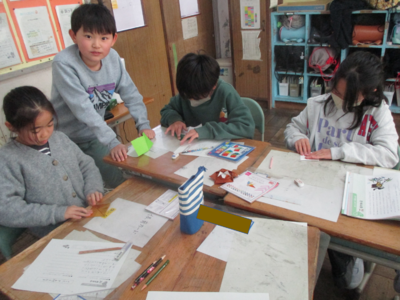 1年生は、これから行う予定の「昔遊びの会」について計画を立てていました。楽しみですねー。