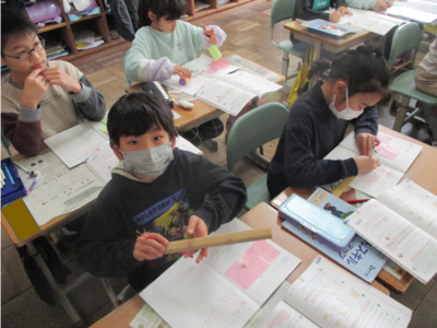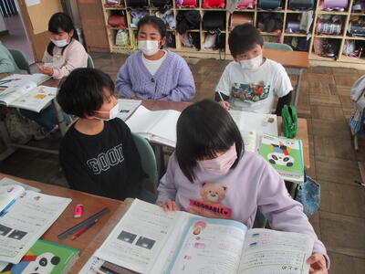 2、4年生、くろしお学級では、2学期の総復習を行ったり、冬休みの計画を立てたりしていました。