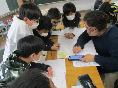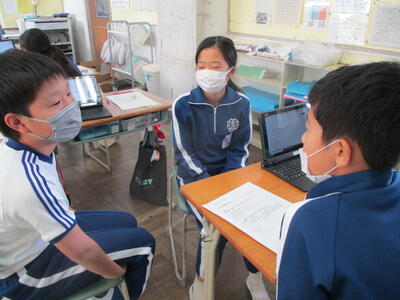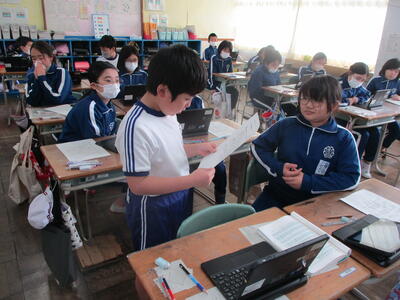 昨日も久之浜大久まちづくりサポートチームの栗田様、遠藤様においでいただき、6年生の総合的な学習の時間でご指導いただきました。