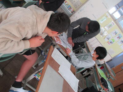 1年生は冬休みに向けての準備が着々と進んでいます。その封筒づくりです。