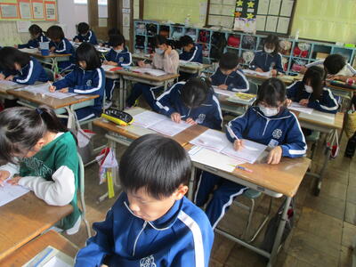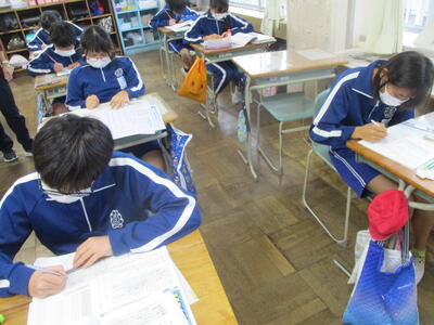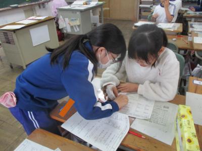 3・4年生はテスト直しをして、次回間違えないよう復習していました。友達との学び合いが上手です。