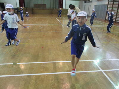 前跳びや後ろ跳び、駆け足跳びなど、あっという間の1年生の成長にびっくりでした。