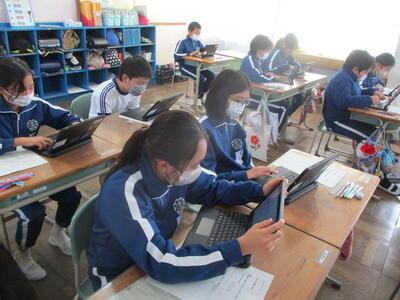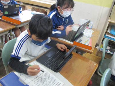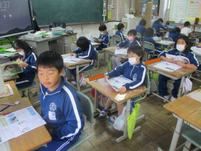 3年生は総合的な学習の時間。2学期学習してきたことを、ファイルにまとめていました。