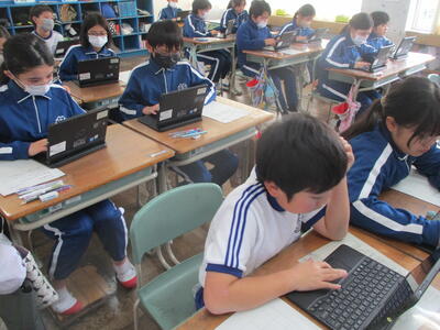 昨日の5年生の国語科では、「インターネットを用いた情報収集を行う活動を通して、情報収集をする際には自分とは逆の考えを表す情報を無視するという確証バイアスが働きやすいことに気付き、立場が異なる複数の情報をもとに、自分の考えをもつことができる。」というねらいの授業でした。
