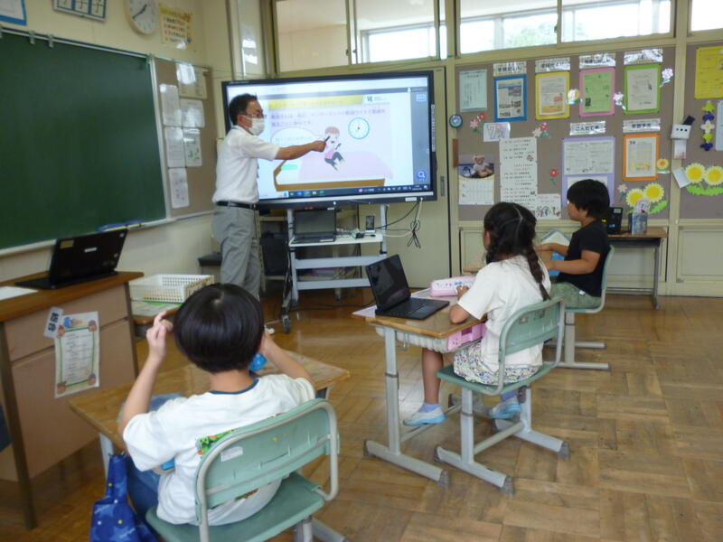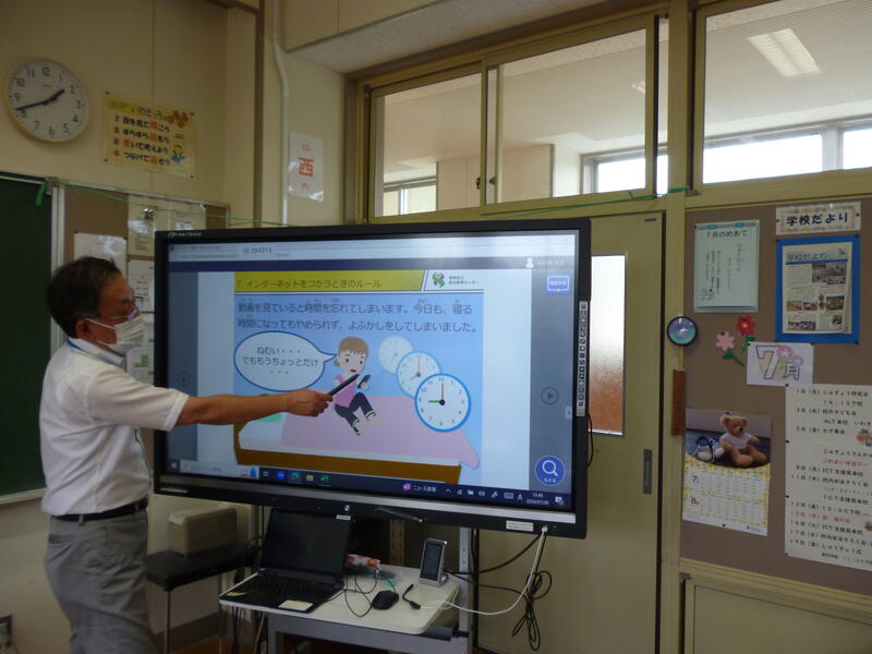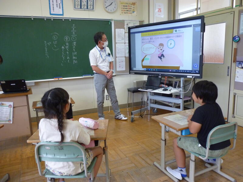(授業の様子です。3年生の総合的な学習の時間では、ICT支援員の先生から情報モラル教育についてサポートしていただきました。)
