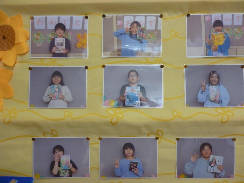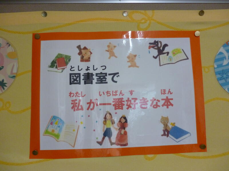 (図書室前の廊下には、素敵な掲示物がありました。子どもたちが図書室にある好きな本について紹介しました。)