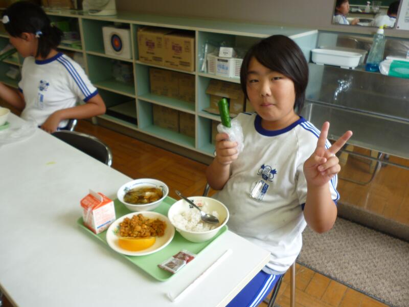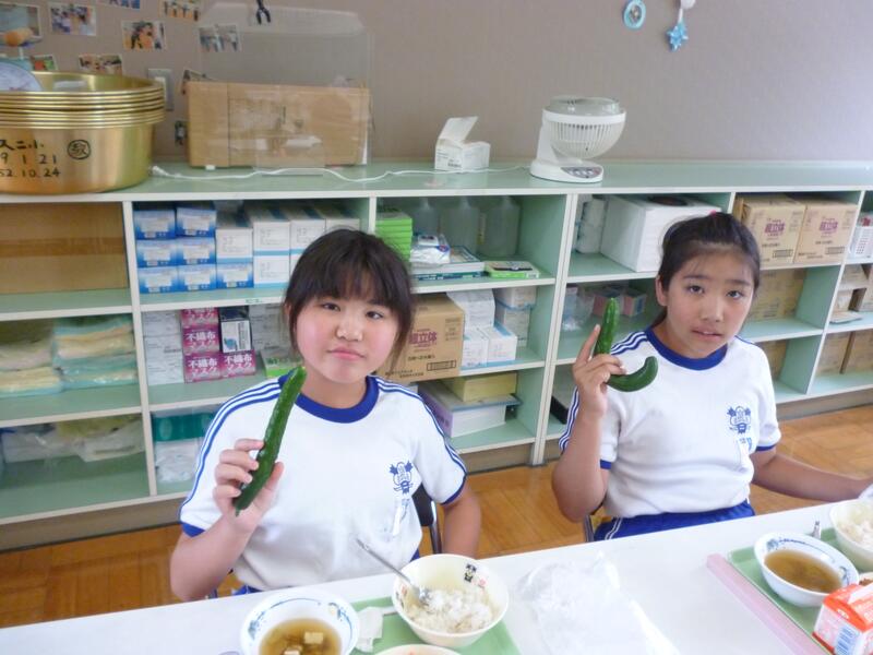 立派に育っています! 2024年7月10日 12時25分 3年生が育てているキュウリを収穫しました。大きく育ち、とても美味しかったとの感想が聞かれました。3年生はキュウリの観察日記をつけています。植物を育てる楽しさを体験を通して感じています。