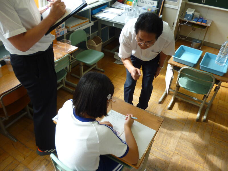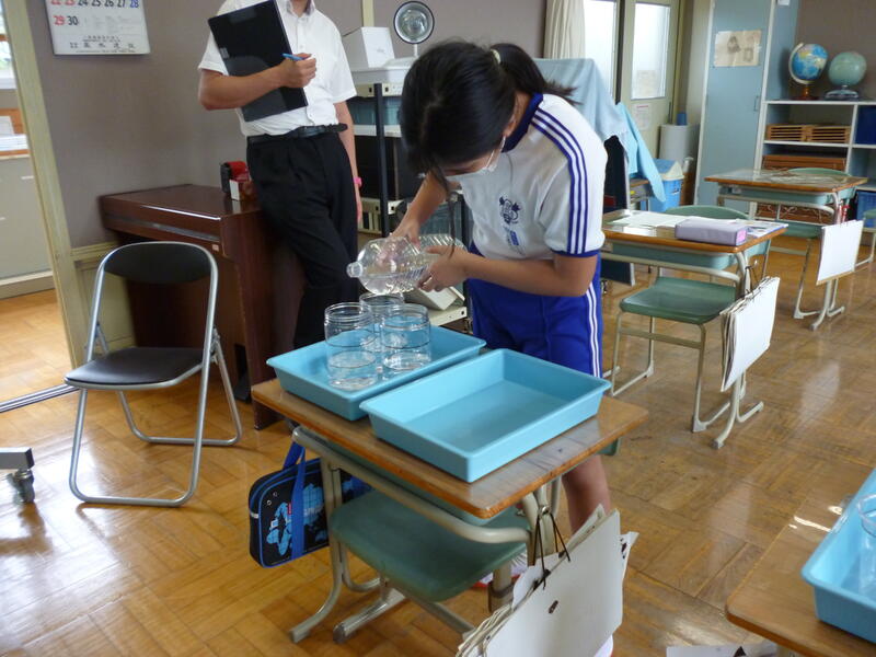 5年生の算数科において研究授業を行いました。授業力向上を目指し、全教員で授業を参観し、良い指導法を共有しました。子どもたちは「2リットルを3人で分けたときの量とその表し方」について、実際に水の体積を量りながら一生懸命学びました。