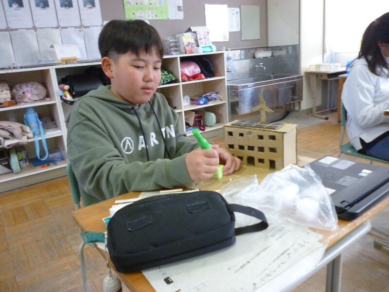 2025年2月4日 13時04分6年生の図画工作の授業では、「あったらいいなプロジェクト」の単元で一人一人が考えた理想の街や施設を模型にしようと取り組んでいました。「二酸化炭素の排出を抑えた街づくりを模型で表したい!」と一生懸命作品づくりに励んでいました。