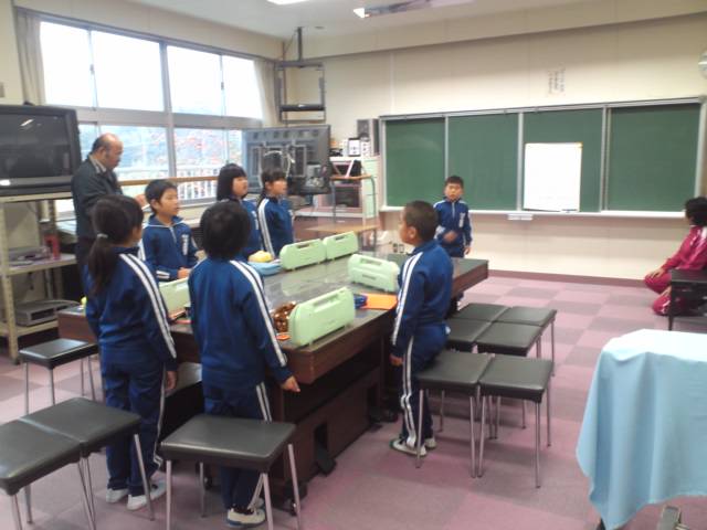 1校時、3・4年生は音楽室で