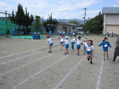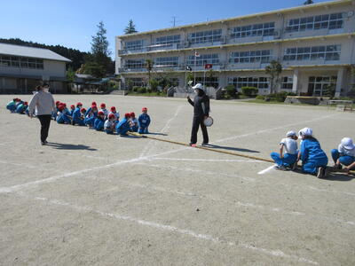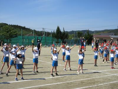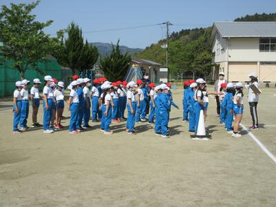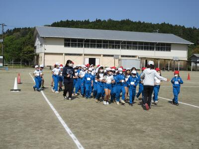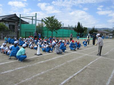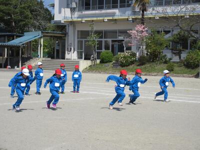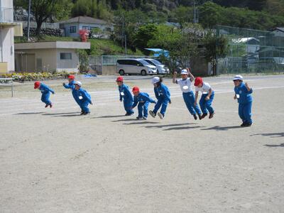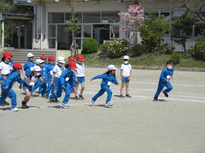 令和5年4月25日(火)、1・2年生は体育の授業。運動会に向けて合同で行いました。はじめに体づくり運動、体を使って大きくジャンプ、そして、ダッシュしていました。さらに、位置について、よーい、トン、太鼓の音でスタートです。後半は、入退場の仕方を確認するそうです。
