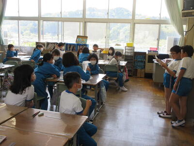 4年生は「あすかい発表会(学習発表会)」についての紹介です。去年の1年生は、音読劇「上遠野版くじらぐも」2年生は、音楽劇「スイミー」…10月28日、楽しみですね。