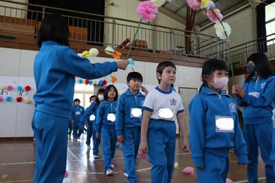 1年生の自己紹介では、一人一人が「私の名前は〇〇です。リカちゃんが好きです。」「スポーツカーが好きです。」「ドラえもんのぬいぐるみが好きです。」「ウルトラマンが好きです。」…と、しっかりと発表することができました。