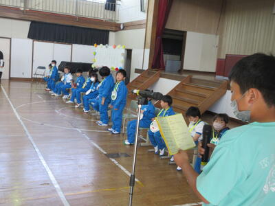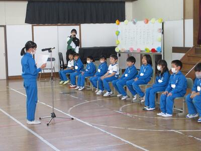 続いて、6年生代表児童が、「困ったことや分からないことがある時には、すぐに助けます。安心してください。これから楽しい思い出を作っていきましょう。」と歓迎の言葉を述べました。