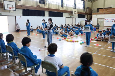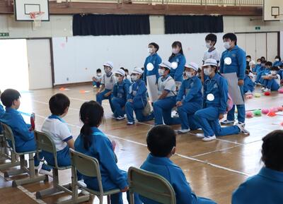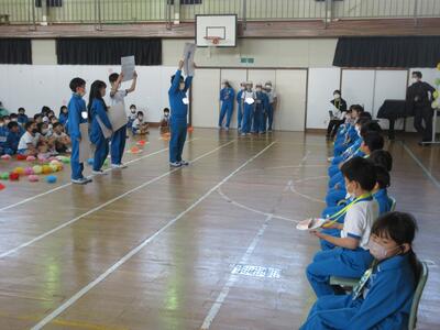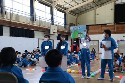 令和5年4月27日(木)、入学おめでとう会で、1年生へ学校紹介をしました。